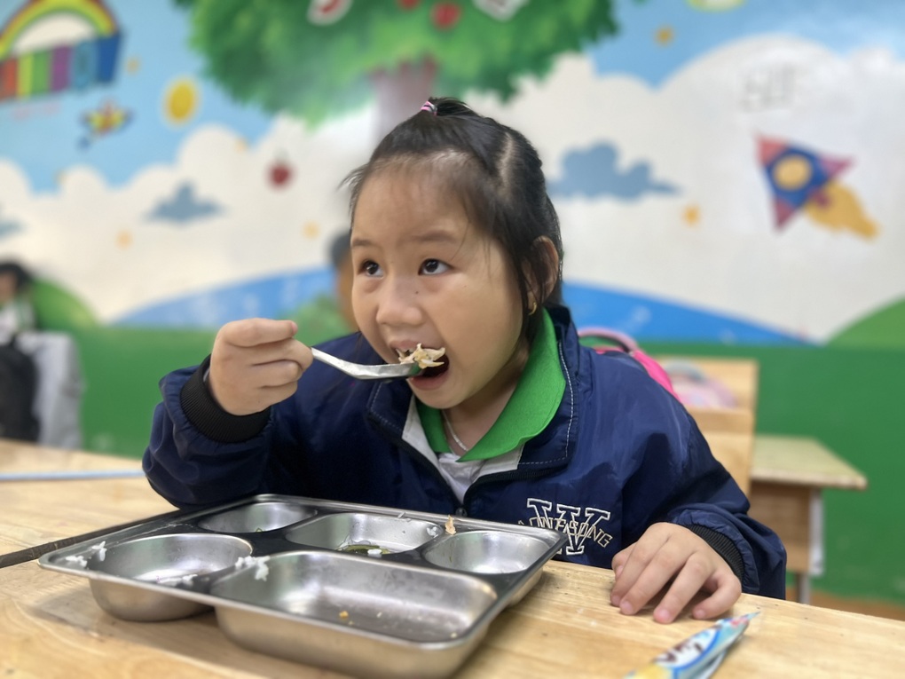 Học sinh Trường Tiểu học Tân Quy, TPHCM trong bữa ăn trưa ngày 28/1 (Ảnh: Hoài Nam).