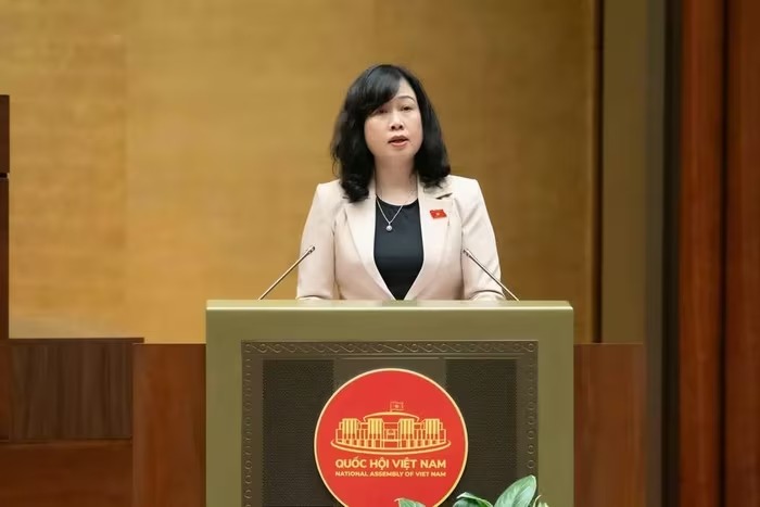 Bộ trưởng Bộ Y tế Đào Hồng Lan trình bày tờ trình về chủ trương đầu tư chương trình mục tiêu quốc gia về chăm sóc sức khỏe, dân số và phát triển giai đoạn 2026-2035. Ảnh: QH