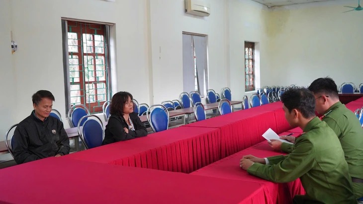 Bà nội cháu P.A. Nguyễn Thị Bích Hằng và anh trai bà nội P.A., ông Nguyễn Ngọc Thành tại cơ quan công an – Ảnh: NGỌC ÁNH