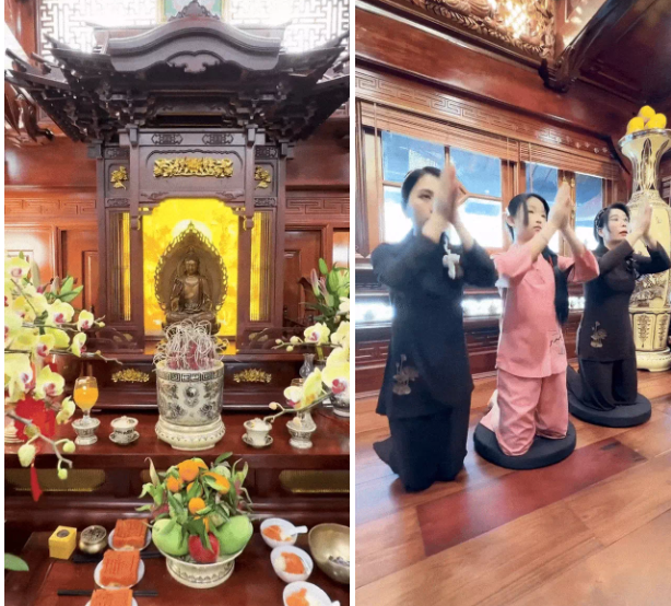 Mailisa (Phan Thị Mai) là một trong những quý bà doanh nhân nhận được sự quan tâm đặc biệt từ cộng đồng mạng, nổi tiếng với độ giàu có “không phải dạng vừa”. Trong biệt phủ xa hoa rộng 4000m² của gia đình nữ CEO, khu vực thờ cúng là một trong những điểm gây ấn tượng nhất, nhưng cũng ít được chia sẻ trên mạng xã hội nhất. Trong đoạn video hiếm hoi ghi lại khoảnh khắc chuẩn bị đồ cúng ngày vía Thần Tài, Mailisa mới để lộ hình ảnh về không gian này. Và có thể thấy, góc tâm linh được nữ doanh nhân chăm chút vô cùng tỉ mỉ, từ cách sắp xếp tượng, vật phẩm thờ cho đến các chi tiết trang trí xung quanh.