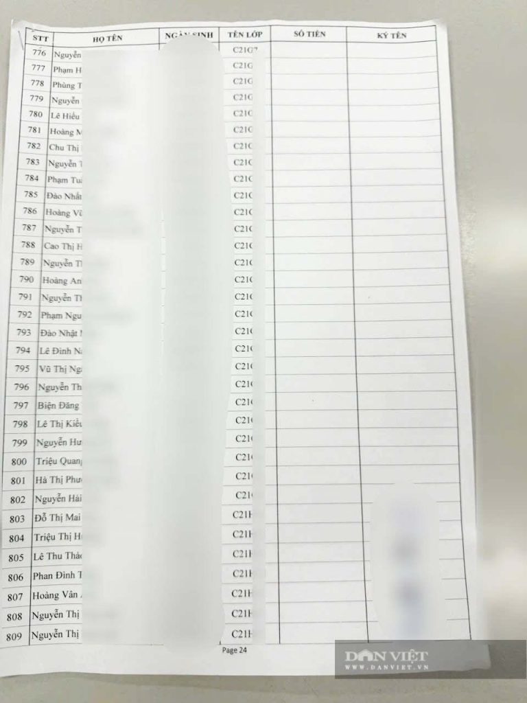 Theo sinh viên, nhà trường đưa tờ giấy ghi tên tuổi, ngày tháng năm sinh, lớp và yêu cầu ký tên, tuy nhiên, phần số tiền để trống. Ảnh: NVCC