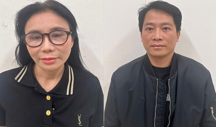 Bà Phan Thị Mai (bên trái) và ông Hoàng Kim Khánh (bên phải). Ảnh: BCA