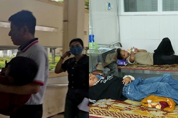 Sau bữa ăn, hàng loạt em có triệu chứng đau bụng, buồn nôn, nôn ói.